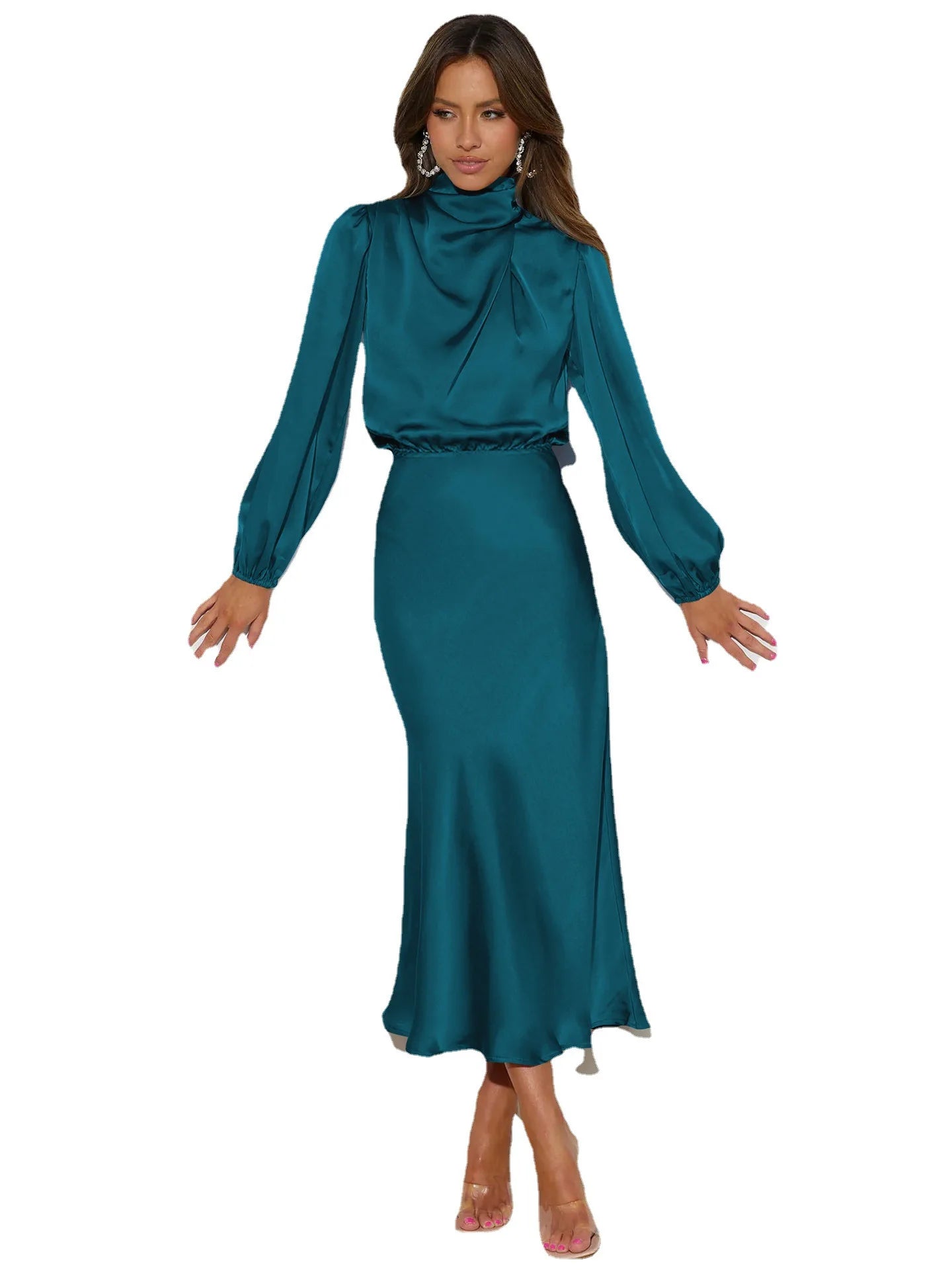 Satin Long Sleeve Loose Fitting Dress